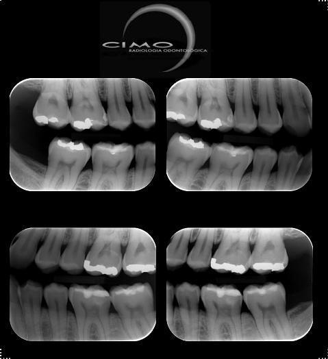 Numa boca adulta são realizadas quatro tomadas radiográficas: pré-molares e molares para cada lado.